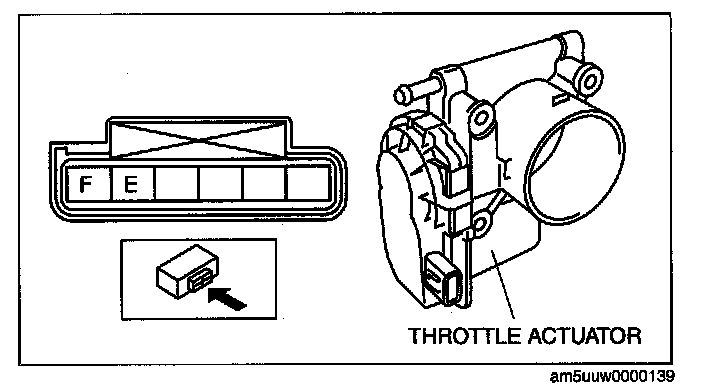 - Throttle actuator terminal E and power supply