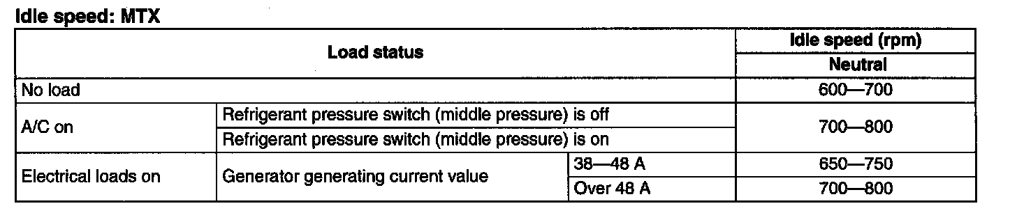 Idle speed: MTX