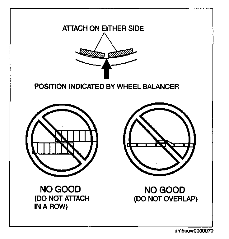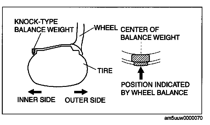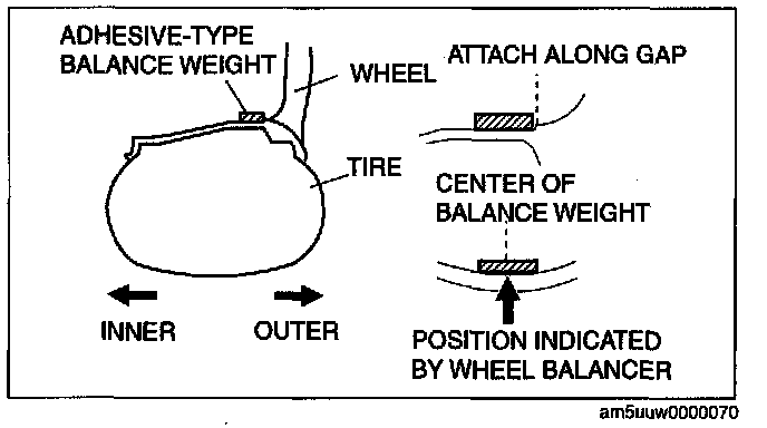 ^ If the remaining unbalance exceeds the specifications, adjust the wheel balance again.