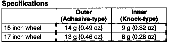 ^ One balance weight must not exceed 60 g (2.12 oz), and a total of tow balance weights must not exceed 100 g (3.53 oz).