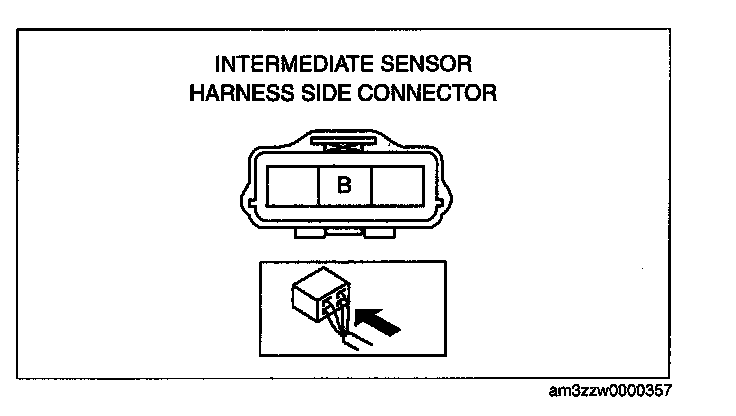 3) Measure the voltage at intermediate sensor connector terminal B (wiring harness side).