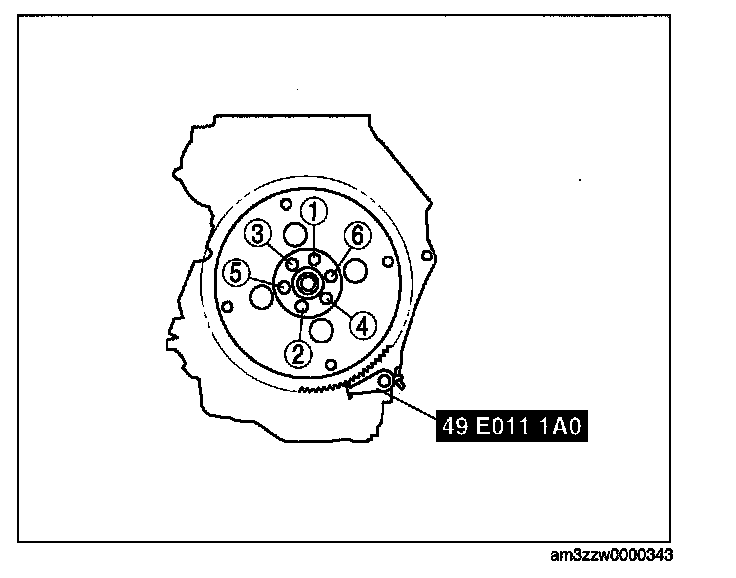 2. Tighten the drive plate mounting bolts in two or three steps in the order as shown in the figure.