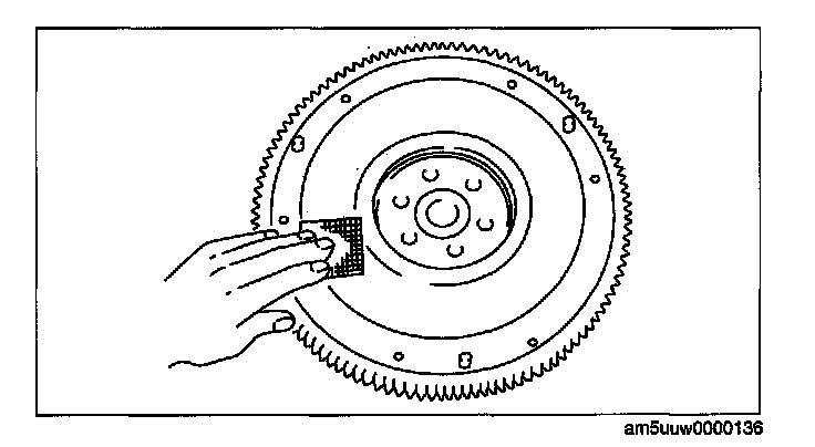 2. Inspect the surface that contacts the clutch disc for scratches, nicks, and discoloration.
