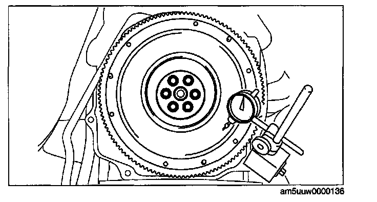 ^ Inspect the runout of the surface that contacts the clutch disc with the flywheel installed to the crankshaft.