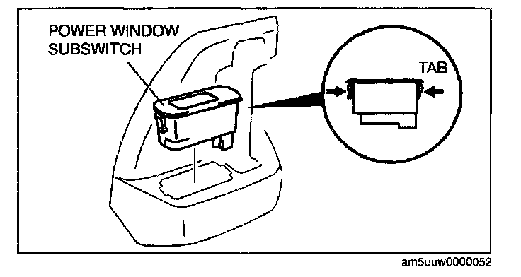 4. Press the tabs and remove the power window subswitch.