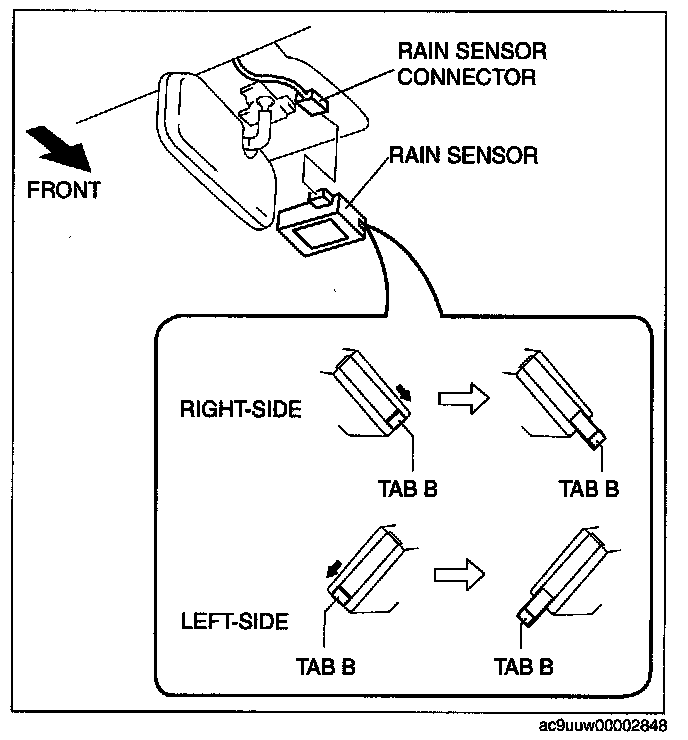 RAIN SENSOR REMOVAL/INSTALLATIONCAUTION: