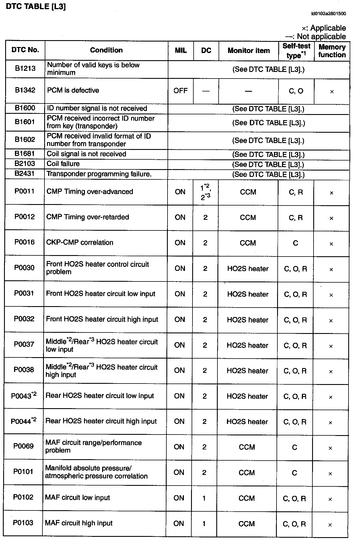 B1213-B2431 / P0011-P0103:
