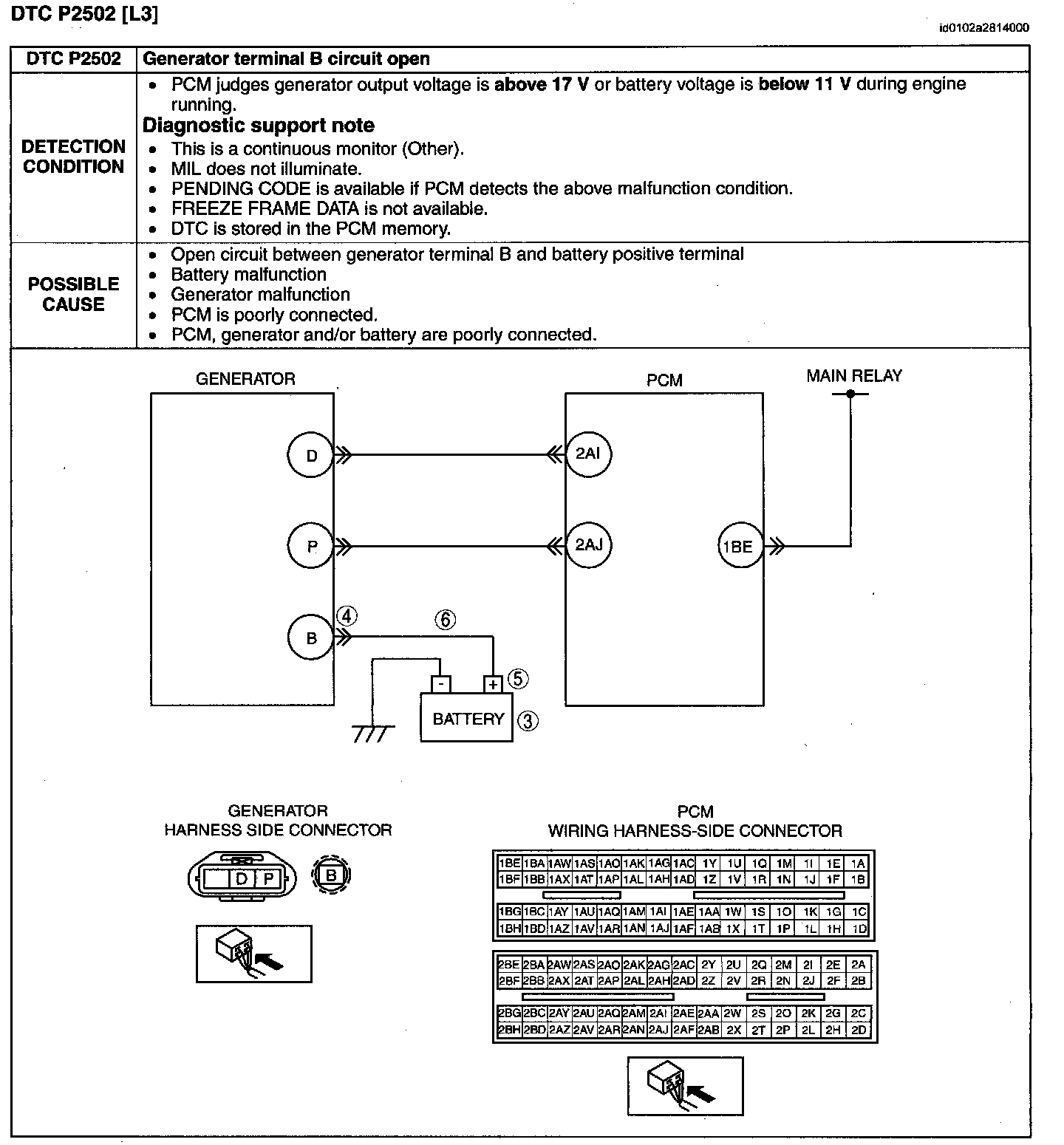Detection Condition/Possible Cause: