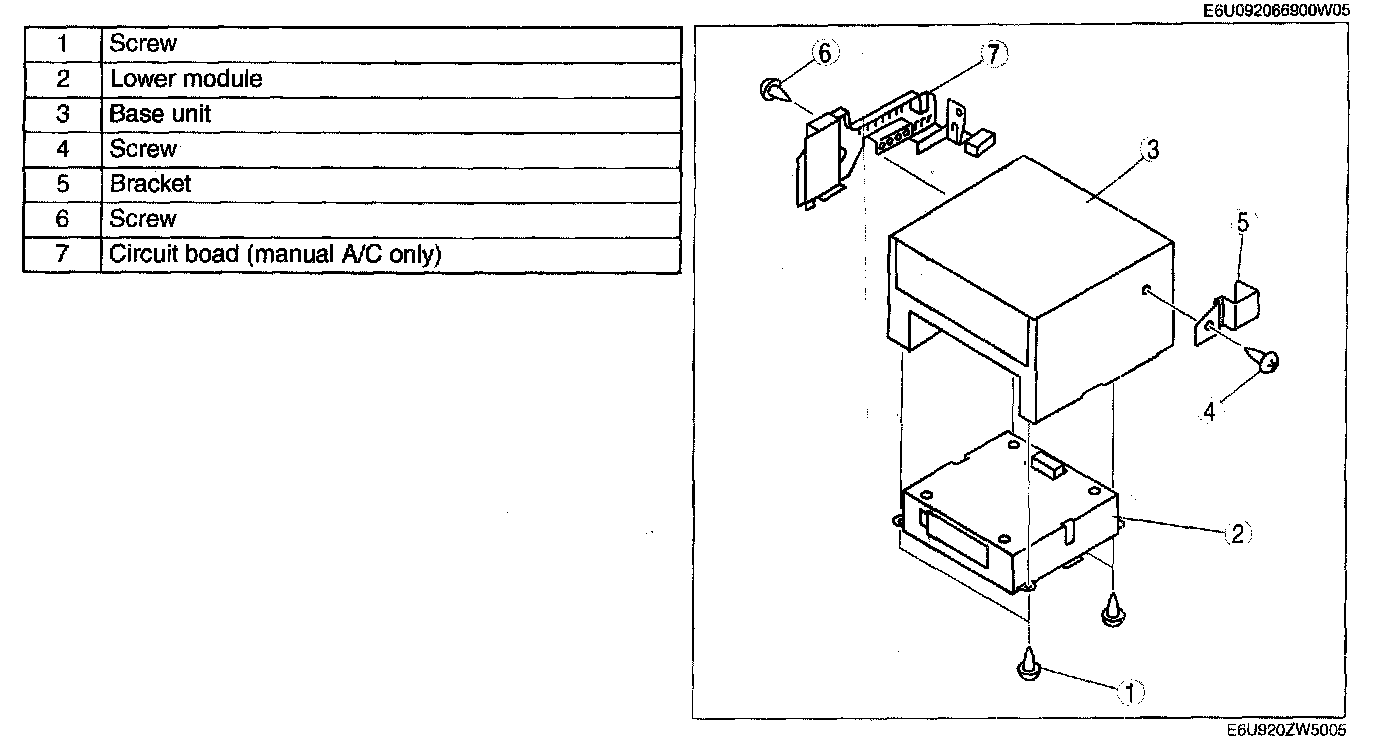 Disassemble in the order indicated in the above table.