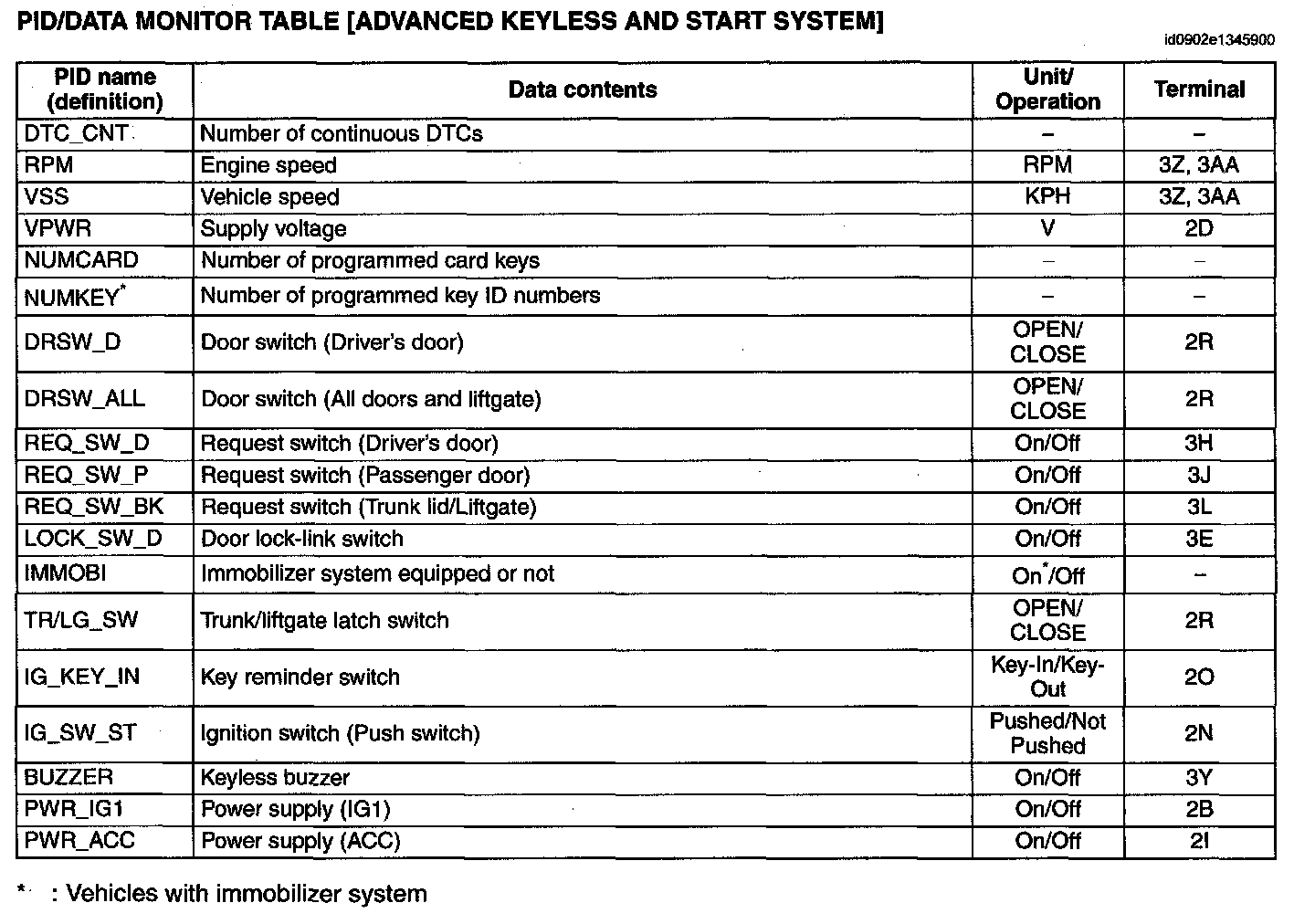 PID/DATA Monitor Table [Advanced Keyless And Start System]: