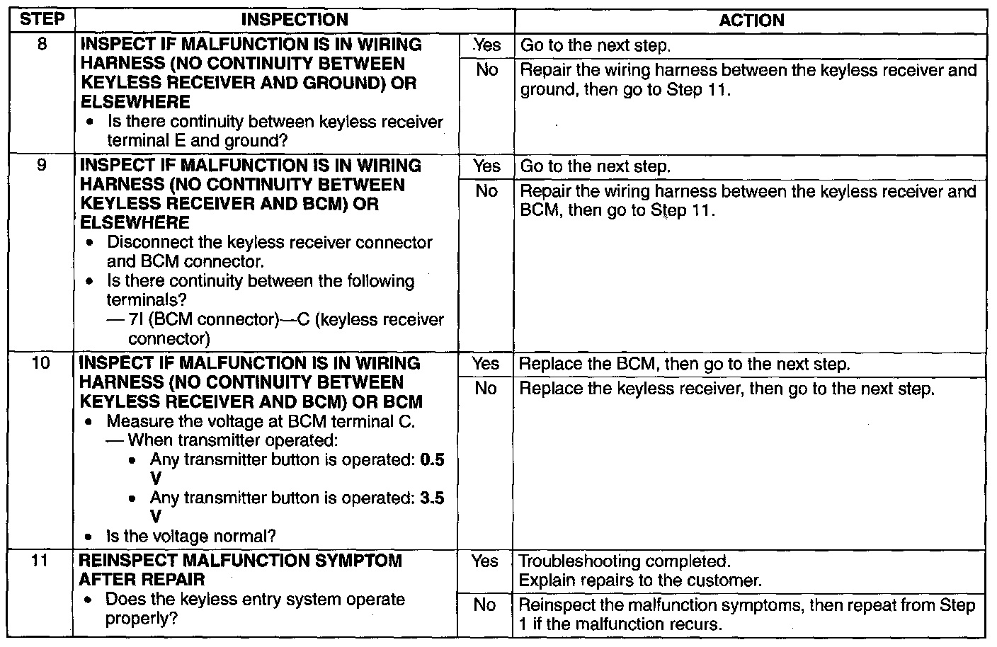 Symptom Troubleshooting [Keyless Entry System]