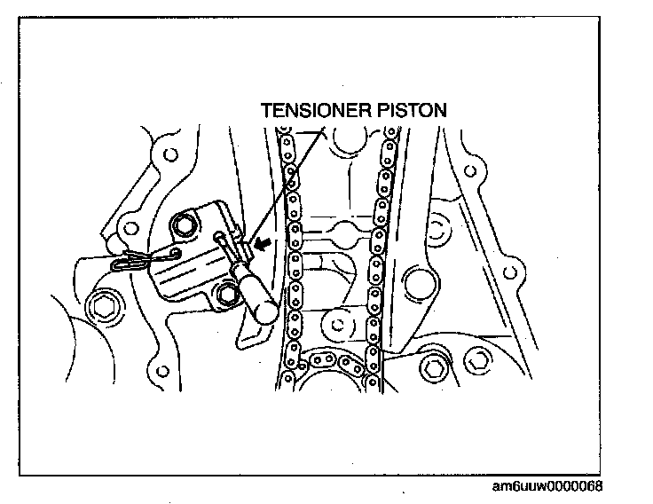 3. Remove the retaining wire or paper clip from the auto tensioner to apply tension to the timing chain.
