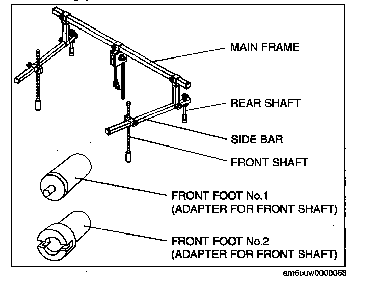 (3) Install the left/right front shaft of the SST with front foot No.2 to the bolt as shown in the figure.
