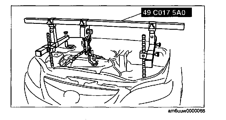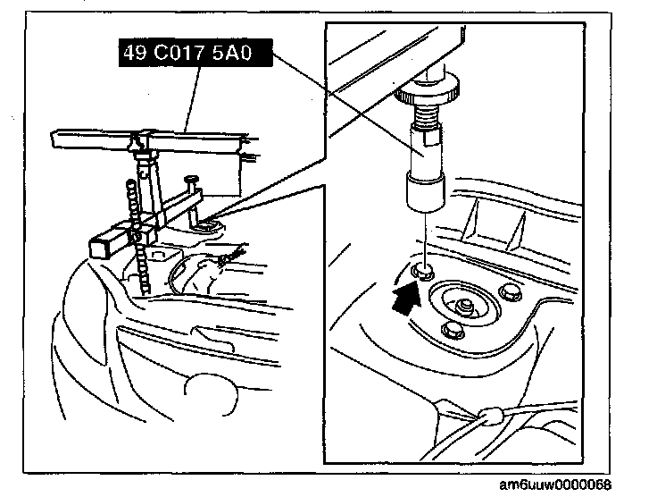 (1) Install the right rear shaft of the SST to the bolt of the right shock absorber as shown in the figure.