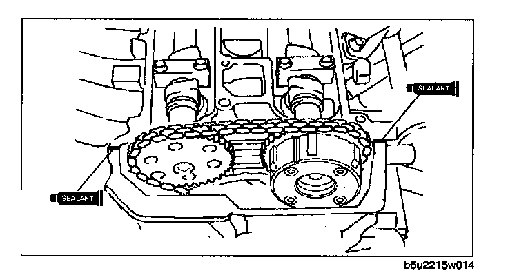 - Install the engine front cover within 10 min of applying the silicone sealant.