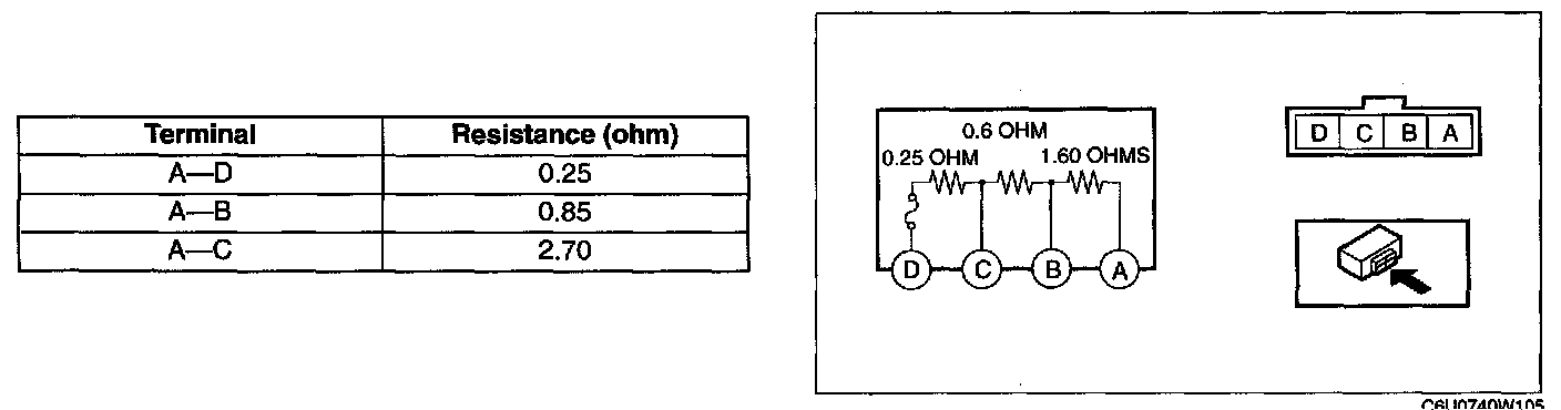 Verity that the resistance between the terminals of the resistor is as shown in the table.
