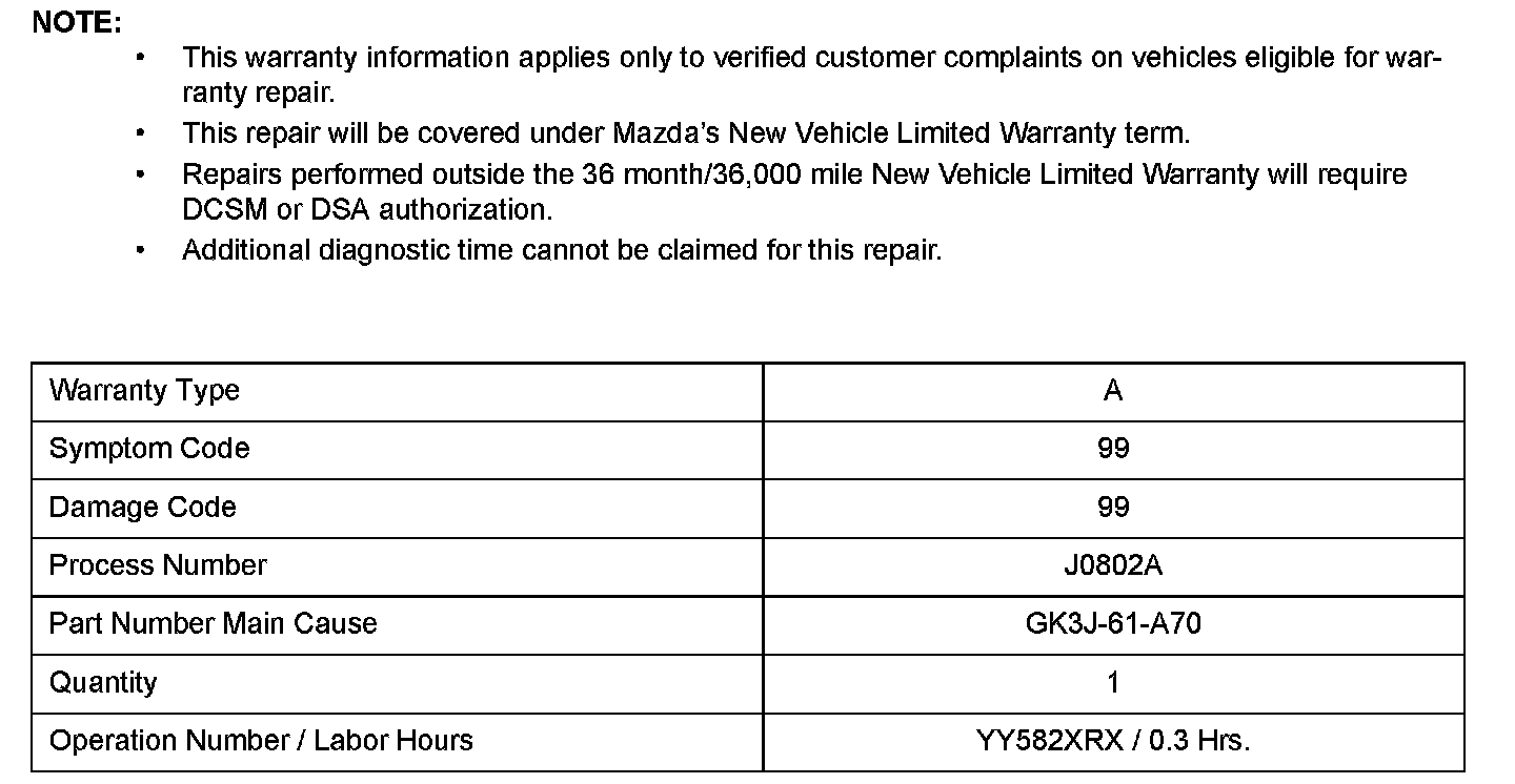 ^ UNDER THE MAZDA SERVICE PROGRAM (MSP17), ALL CURRENT DEALER INVENTORY AND RETAILED VEHICLES FOUND TO BE WITHIN THE ABOVE VIN RANGES, AND PRODUCED BETWEEN MAR. 10, 2008 THROUGH APR. 7, 2008, MUST BE INSPECTED AND REPAIRED ACCORDING TO THE INSTRUCTIONS CONTAINED IN THIS SERVICE BULLETIN.