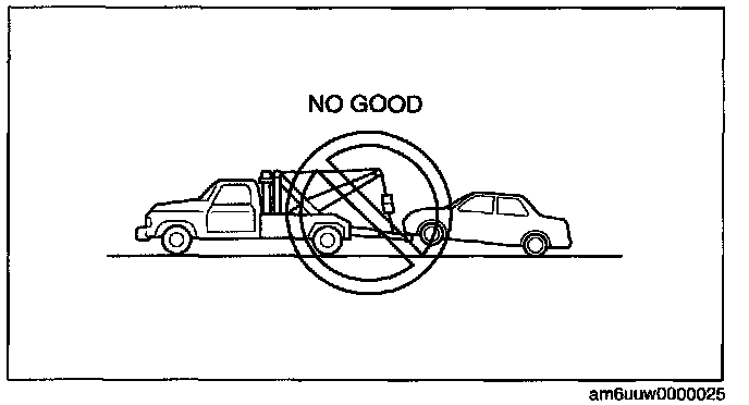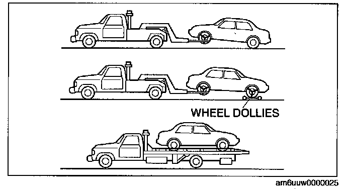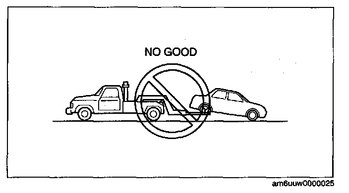 - Do not tow the vehicle pointed backward with driving wheels on the ground. This may cause Internal damage to the transaxle.