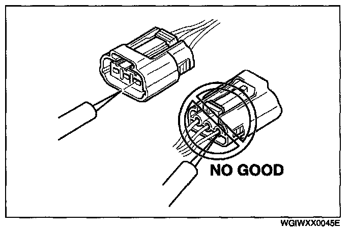 - When a tester is used to inspect for continuity or measuring voltage, insert the tester probe from the wiring harness side.