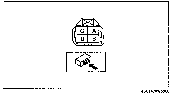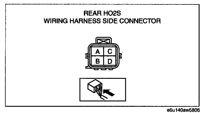 2. Measure the rear HO2S resistance between terminals C and D.
