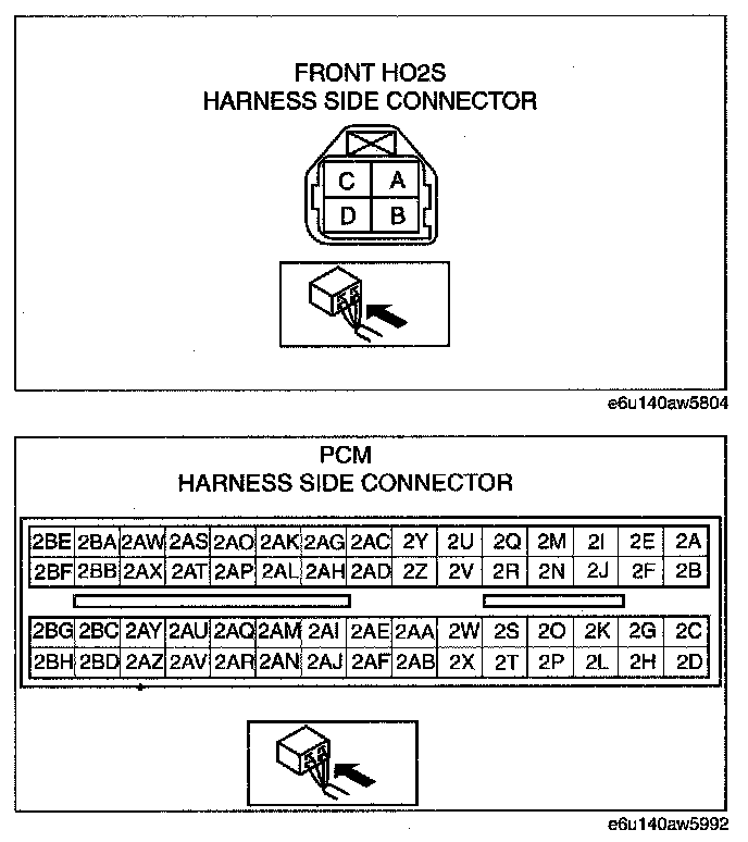 - Front HO2S terminal 2D and PCM terminal 2BG