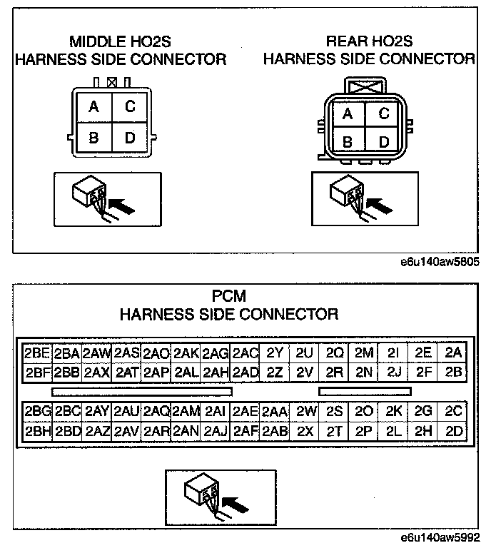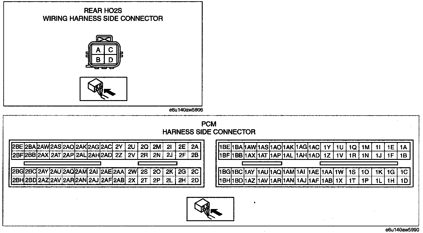 - Rear H02S terminal D and PCM terminal 2BE