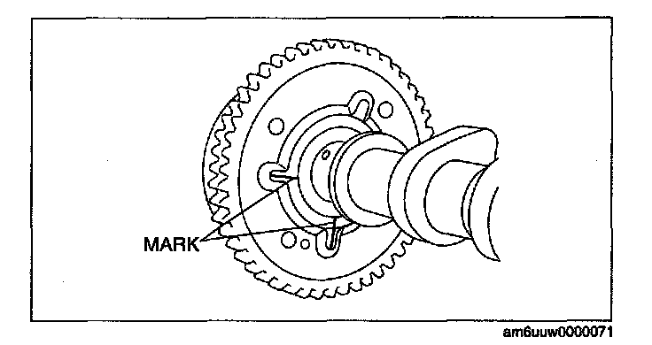 ^ When the variable valve timing actuator is replaced with a new one, mark it in the same location as the old one.
