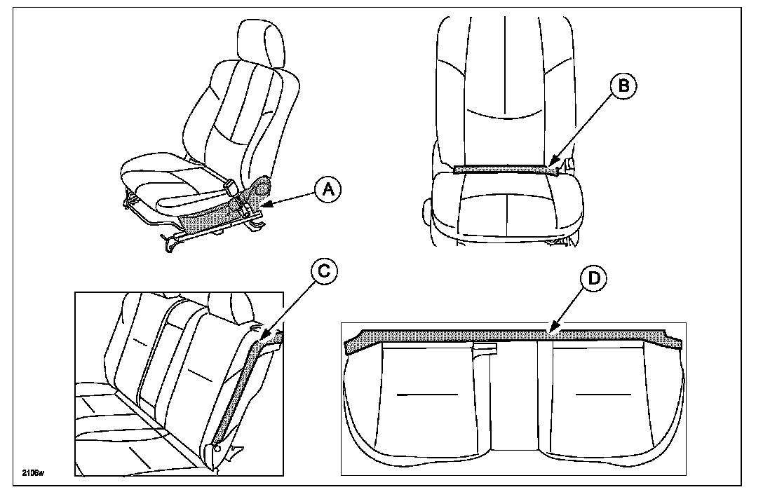 ^ Area D - Cushion and seatback contact each other (rear seat).
