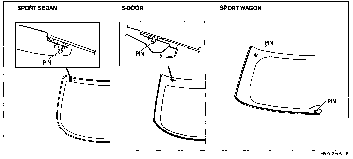 8. Set the position of the front windshield glass and insert a pin into the body. Install the glass.