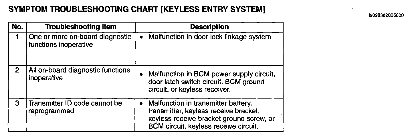 Symptom Troubleshooting Chart [keyless Entry System]: