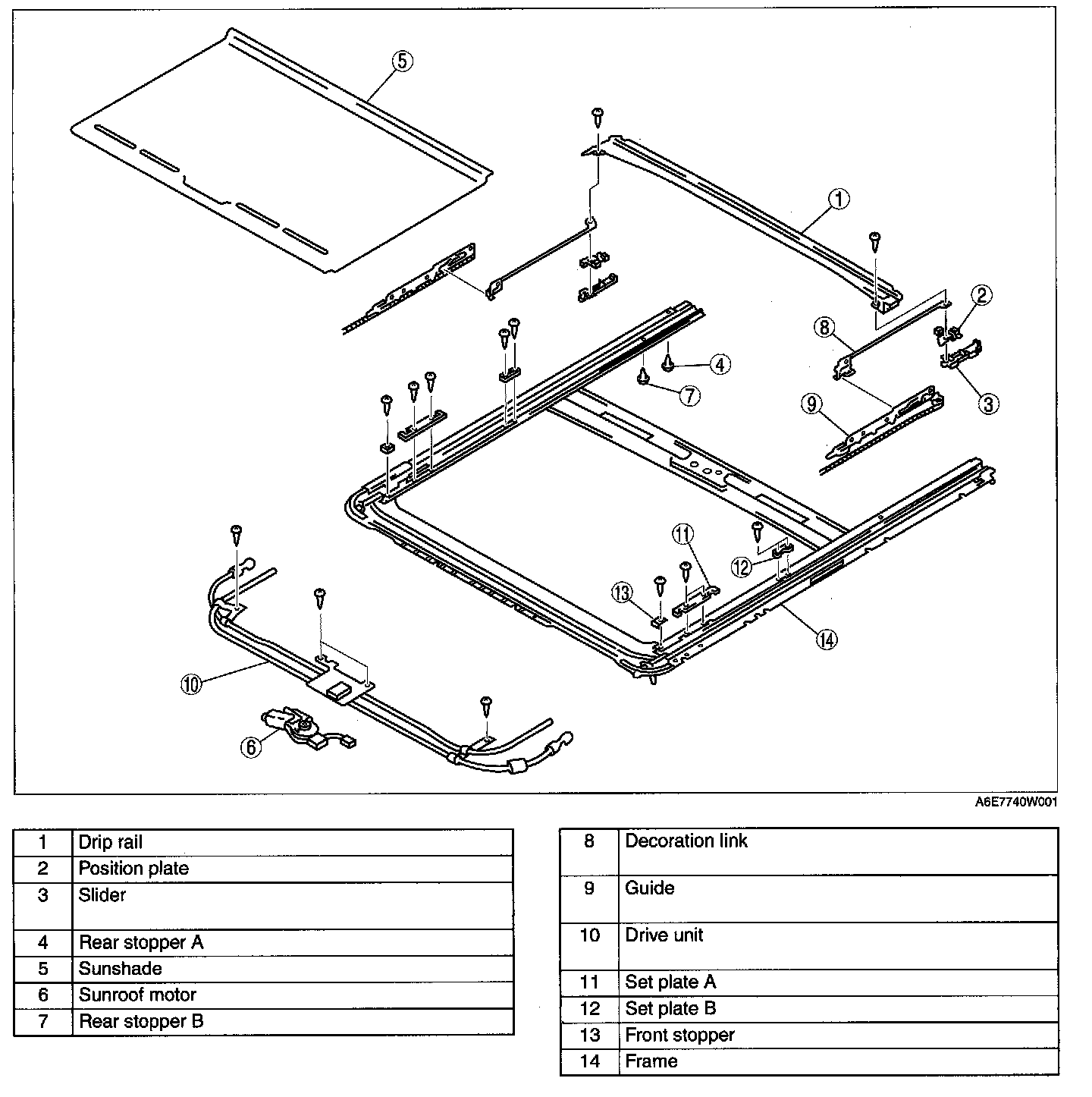 SUNROOF UNIT DISASSEMBLY/ASSEMBLY1. Disassemble in the order indicated in the table.