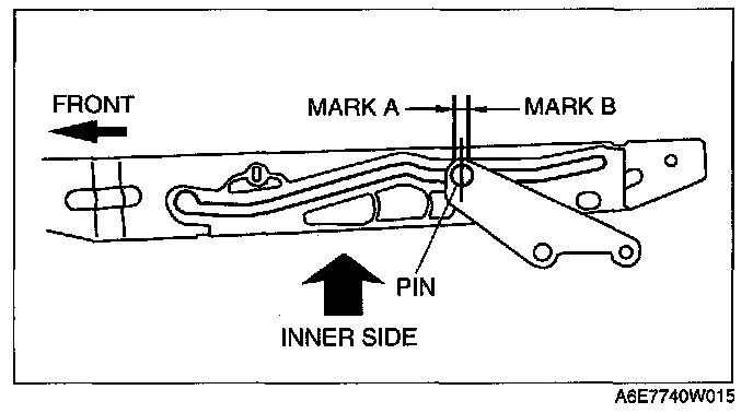 2. Move the guide by hand until center of pin comes between mark A and B.