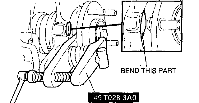 ^ If the dust cover interferes with the wheel hub bolt and the wheel hub bolt cannot be removed, tap the part shown in the figure with a chisel lightly and bend the processing point back to the steering knuckle side.