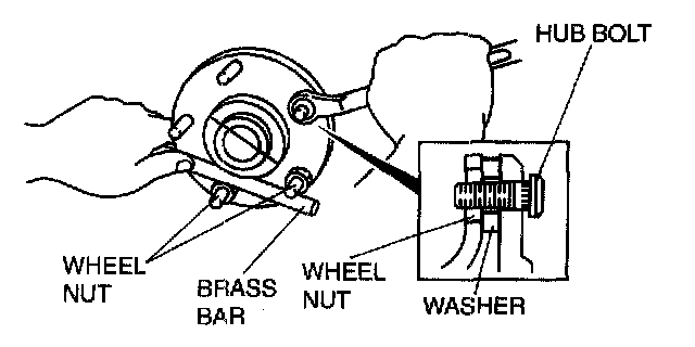 3. Tighten the hub nut while holding the wheel hub using a brass bar.