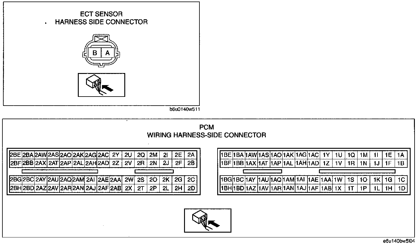 - ECT sensor terminal B and PCM terminal 2AJ