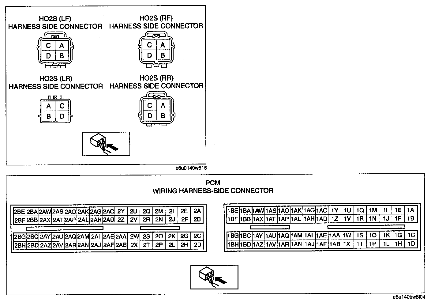 - HO2S (LR) terminal D and PCM terminal 2A0