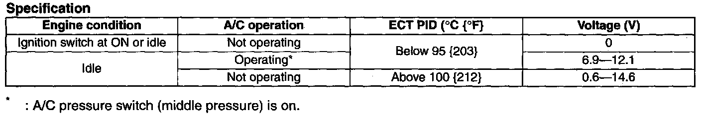 4. Fully open the throttle valve and verify that the A/C compressor magnetic clutch does not actuate for 2-5 s.