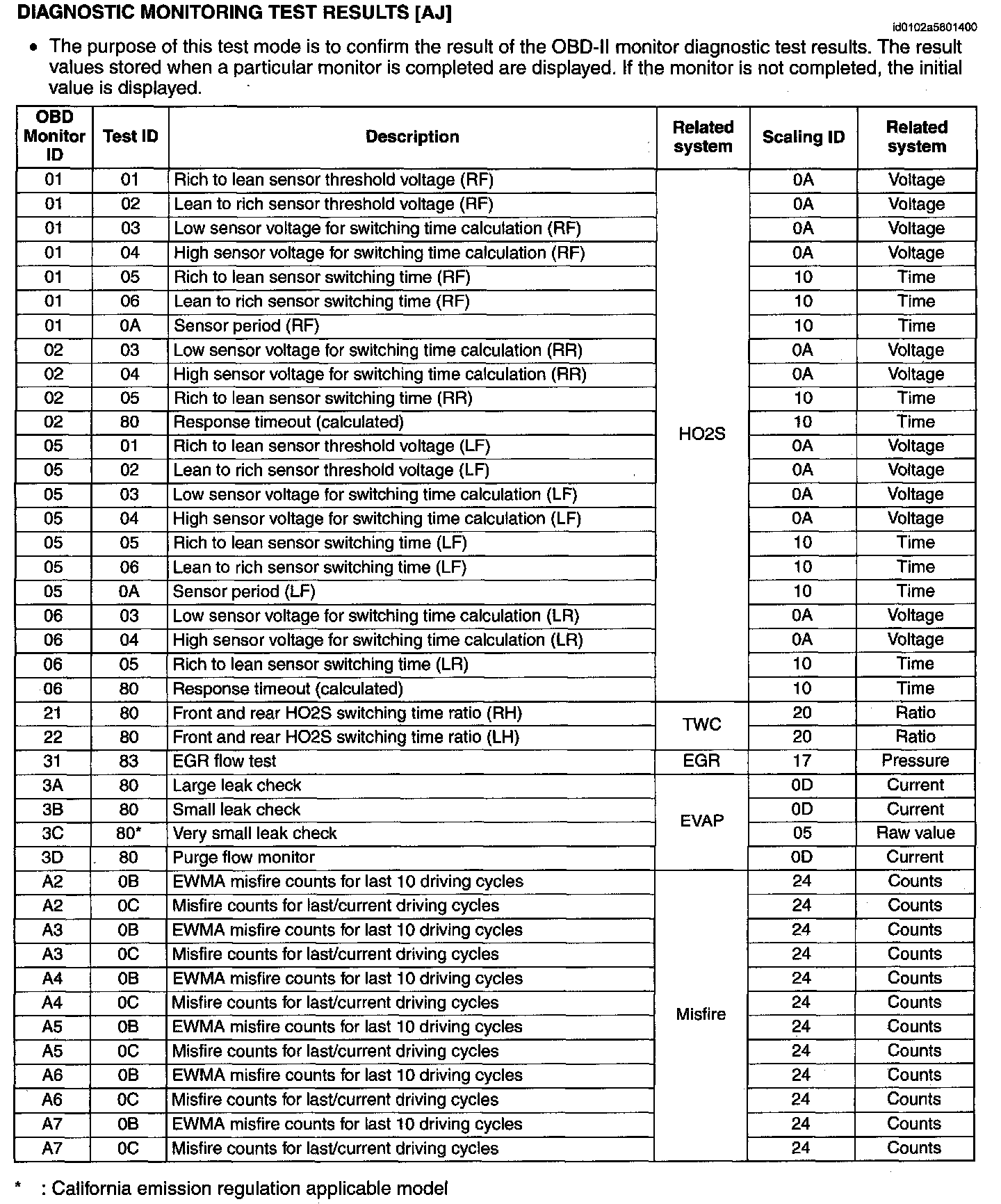 Diagnostic Monitoring Test Results