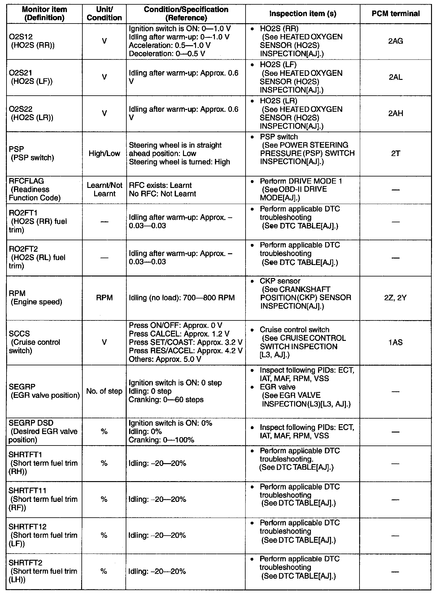 PID/Data Monitor Table(Reference) (Part 2):
