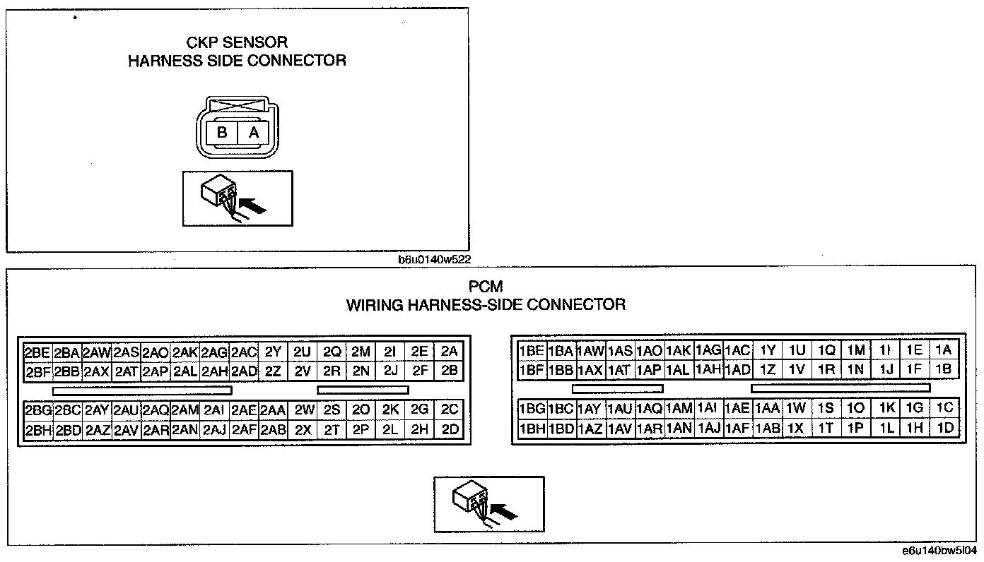 - If the CKP sensor is okay, but the PID value is out of specification, perform the "Circuit Open/Short Inspection".