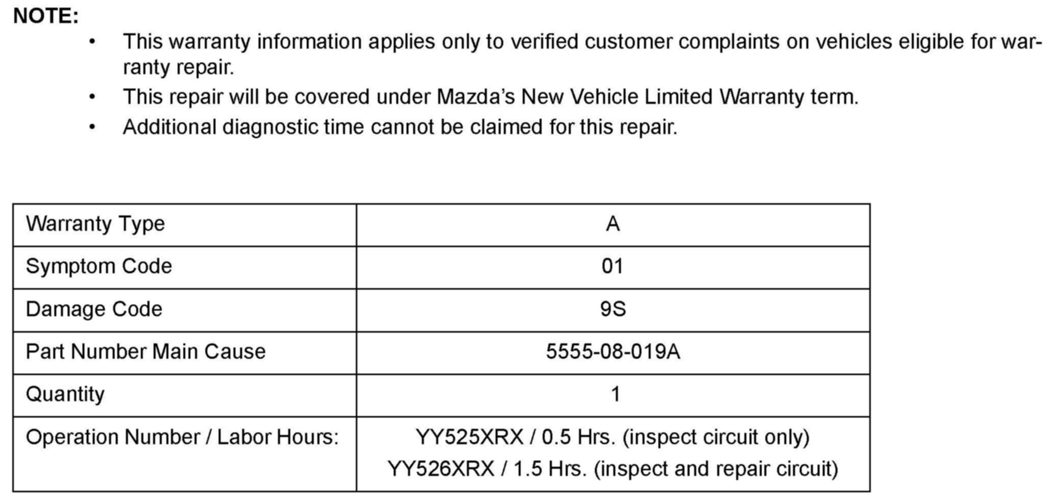 (Service Bulletin is not applicable to MAZDASPEED6)