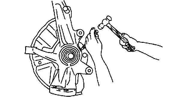 2. If the bearing inner race remains on the front wheel hub component, grind a section of the bearing inner race until approximately 0.5 mm (0.02 inch) remains. Then remove it using a chisel.