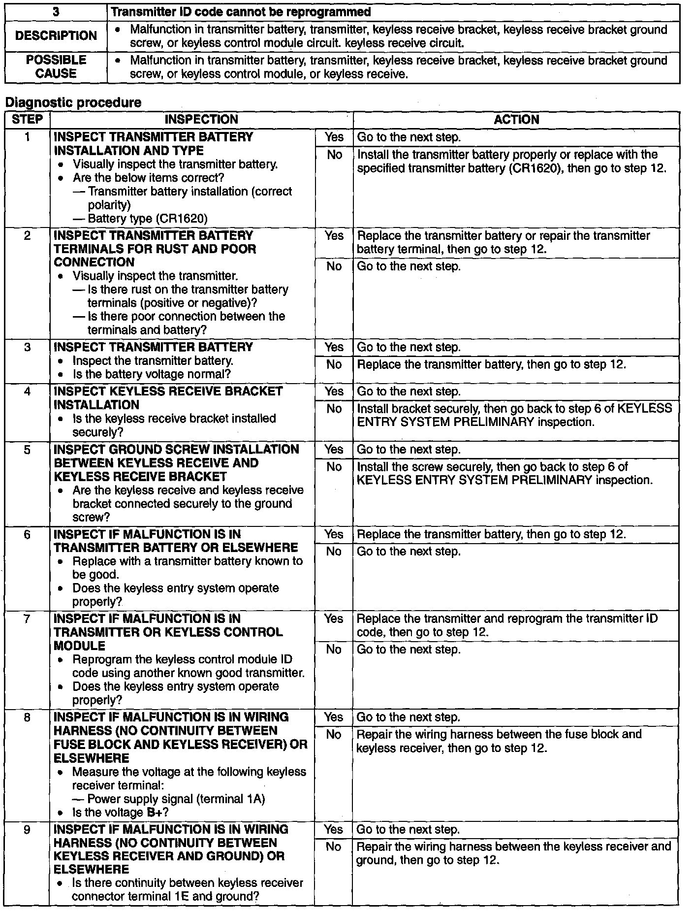 No.3 Transmitter ID Code Cannot Be Reprogrammed