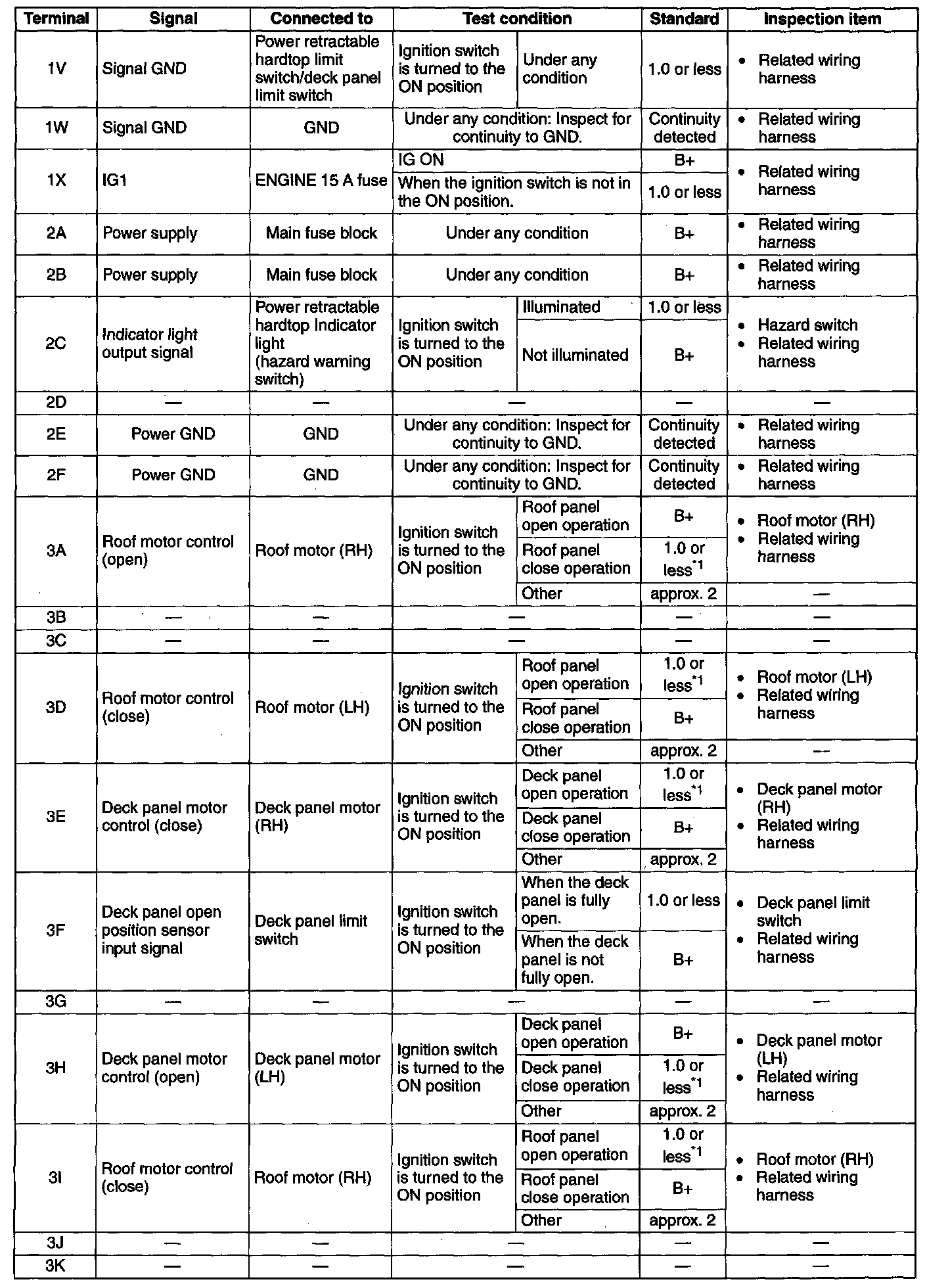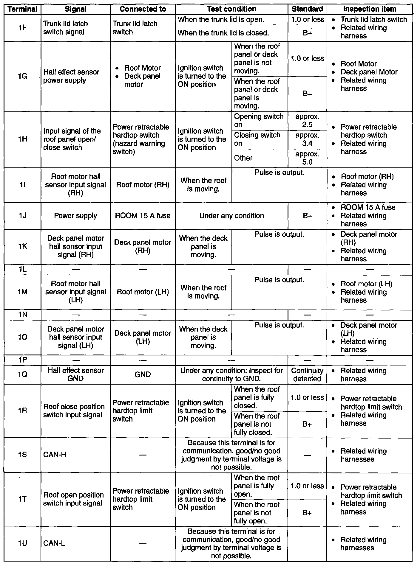 - Terminal connected: power retractable hardtop control module 1I (RH), 1M (LH)