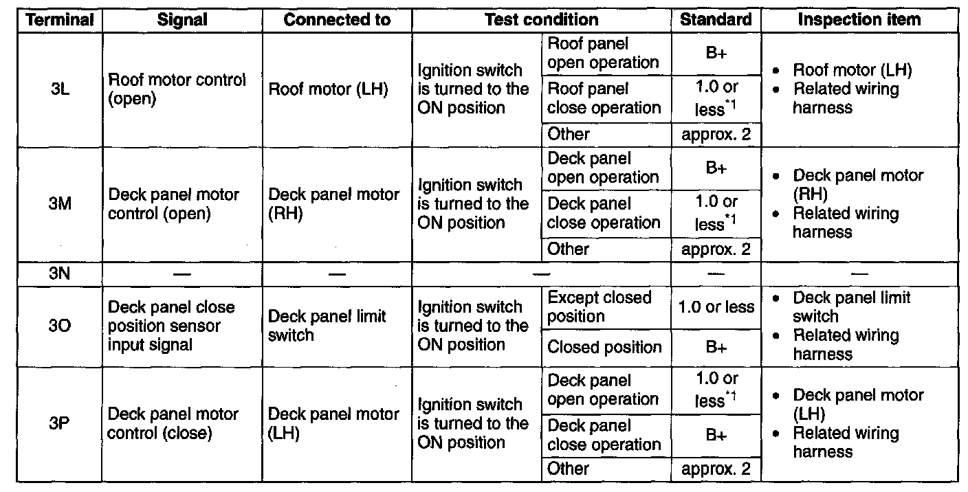 * 1. : The voltage increases during operation speed control of the roof and deck panel.
