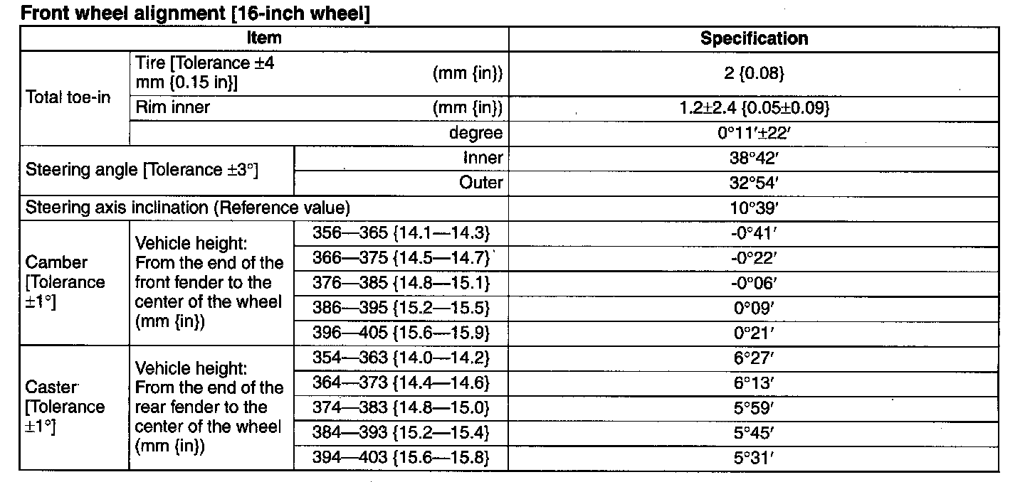 Front wheel alignment [16-inch wheel]