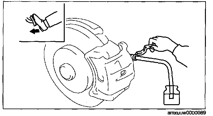 1. Remove the bleeder cap from the brake caliper, and connect a vinyl tube to the bleeder screw.