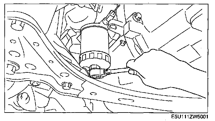 1. Remove the oil filter using a commercially available, cup-type oil filter wrench (76 mm (3.0 in) diameter, 15 sided).