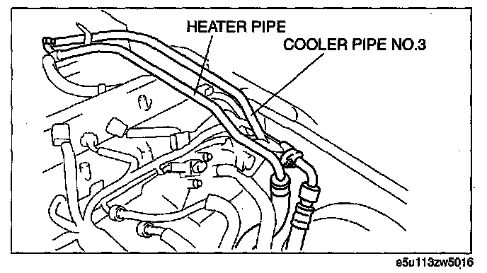 5. Move the cooler pipe No.3 and heater pipe slightly out of the way.