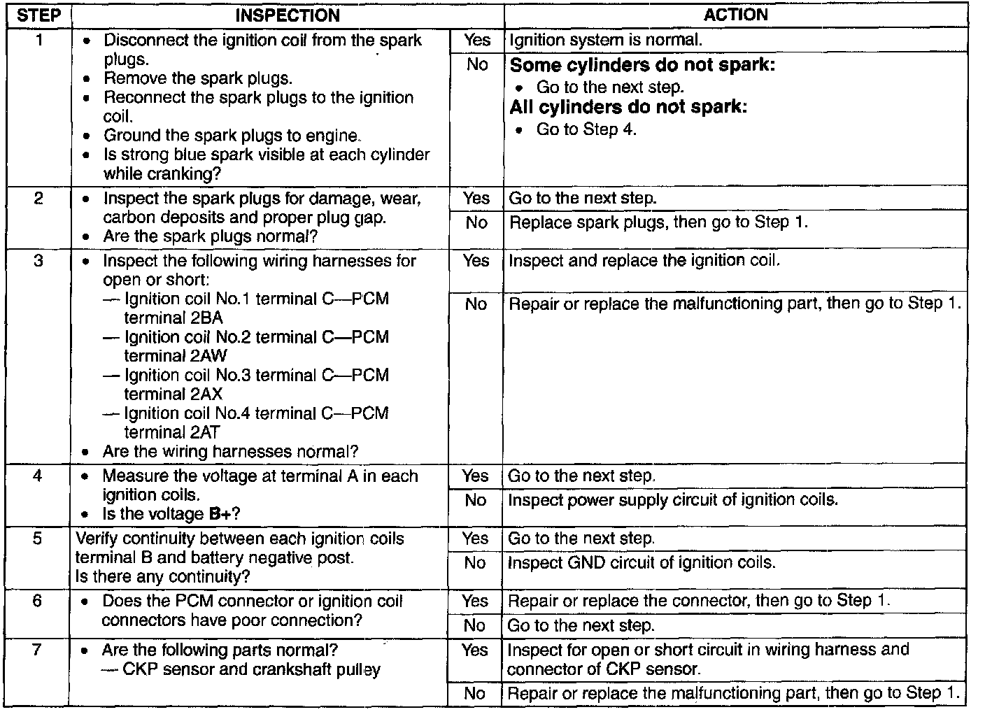 3. Inspect the ignition system in the following procedure.